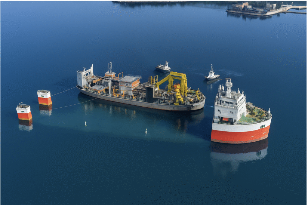 A semi-submersible transport solution that floats cargo on and off the vessel without cranes—ideal for massive or delicate marine structures requiring gentle, low-stress handling and maximum stability.